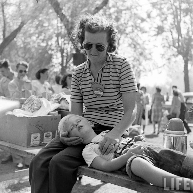 I stumbled across this treasure of photographs on LIFE MAGAZINE'S website of historical events - this one being the ALL STATES PICNIC in Ontario, California in 1948. Allan Grant, one of LIFE MAGAZINE'S top photographers, managed to capture over 70 candid and semi candid photo's of the picnic. I took an immediate interest to this on so many levels. First of all, Euclid Avenue in Ontario, California - I must have driven up and down this street over a thousand times in my lifetime. It falls into a local